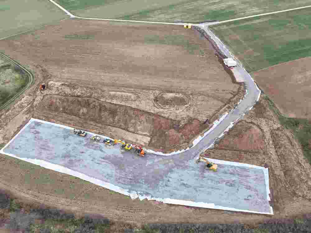 Für den Abschnitt E3 liegt der Planfeststellungsbeschluss seit Ende Mai 2023 bereits vor. Während die Bauarbeiten an der untertägigen Leitung im Bergwerk seit einigen Monaten laufen, startete im Januar der Bau eines kurzen Trassenstücks beim Infocenter in Leingarten. Das Teilstück von knapp 75 Metern kreuzt den landwirtschaftlichen Weg am Infocenter in offener Grabenbauweise – und bindet an den späteren Bergwerksschacht an. Kürzlich konnte der Graben rückverfüllt und die Bauarbeiten wie geplant auf Ende Februar fertiggestellt werden. Auch die Schwerlaststraße für die baldigen Schachtbauarbeiten wurde hergerichtet.